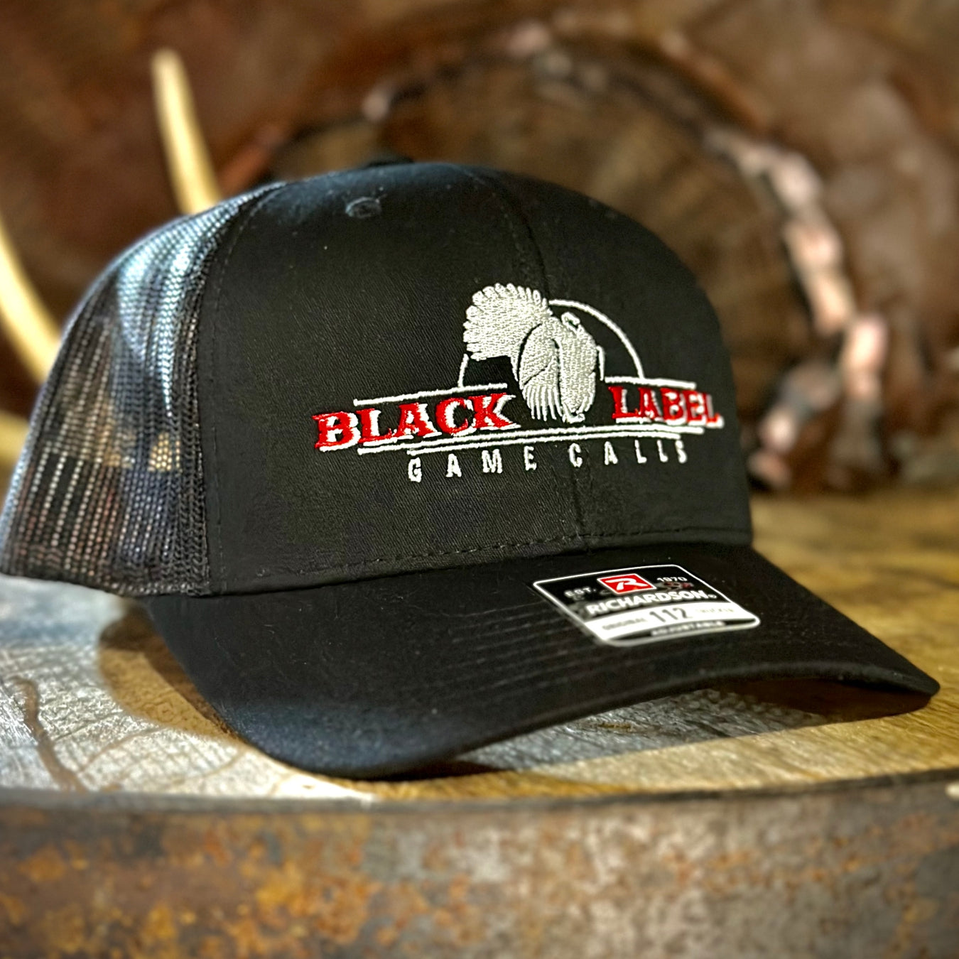 Featuring Black Label Game Calls logo stitched in white/red